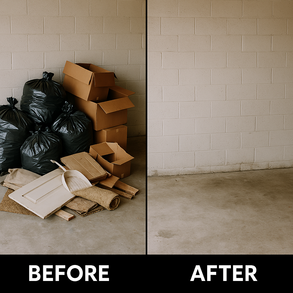 Bagging, haul-away, and final sweep-out included. Handles light, standard, and heavy debris removal — from clutter to full property turnover. High-volume cleanouts, multiple trailer loads, and heavy debris may incur additional charges.